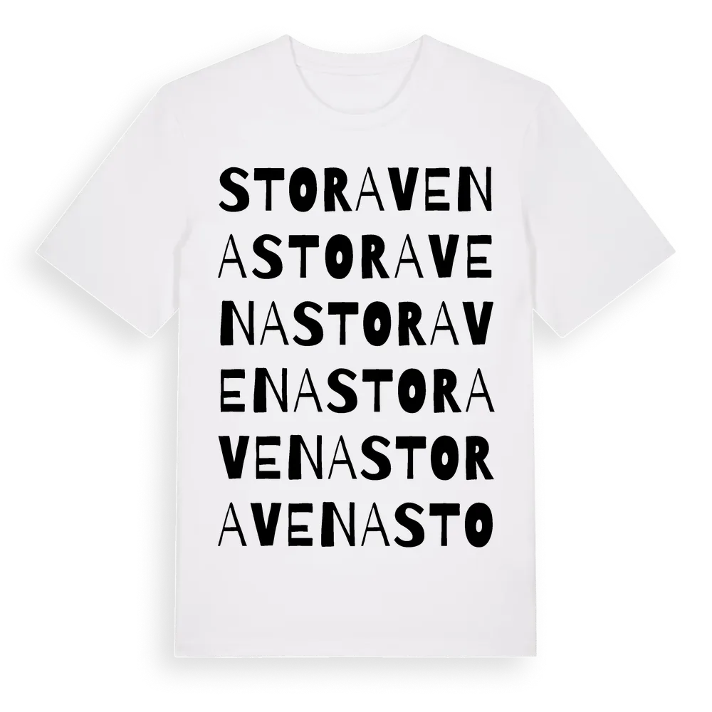 Stora Vena ordlek t-shirt är inspirerad av Stora Vena i Västra Götalands län, Sverige. Tröjan är designad för dig som har en speciell koppling till platsen – oavsett om du bor här, har rötterna här eller bara älskar Stora Vena.