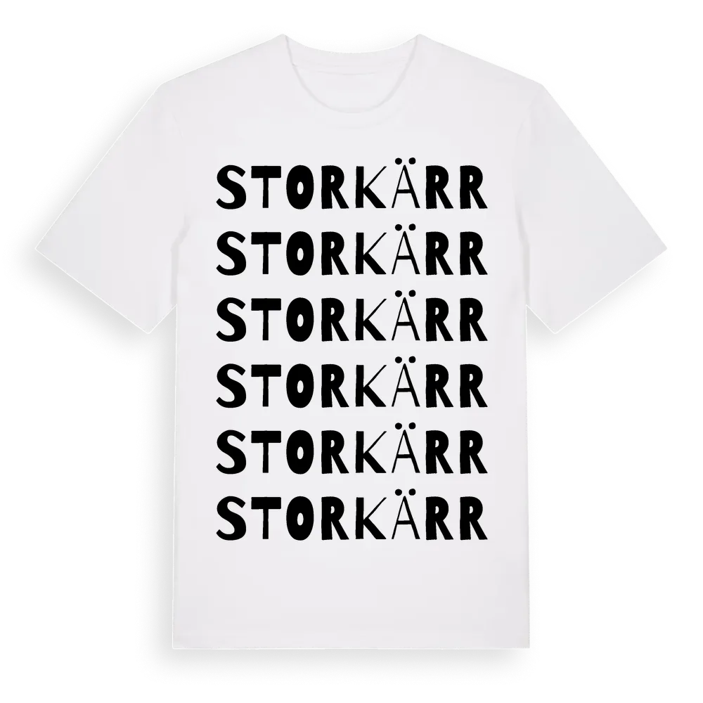 Storkärr ordlek t-shirt är inspirerad av Storkärr i Västra Götalands län, Sverige. Tröjan är designad för dig som har en speciell koppling till platsen – oavsett om du bor här, har rötterna här eller bara älskar Storkärr.