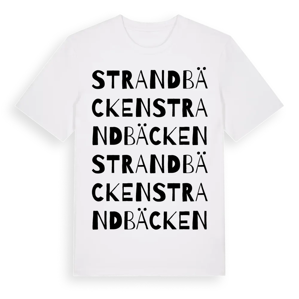 Strandbäcken ordlek t-shirt är inspirerad av Strandbäcken i Västra Götalands län, Sverige. Tröjan är designad för dig som har en speciell koppling till platsen – oavsett om du bor här, har rötterna här eller bara älskar Strandbäcken.