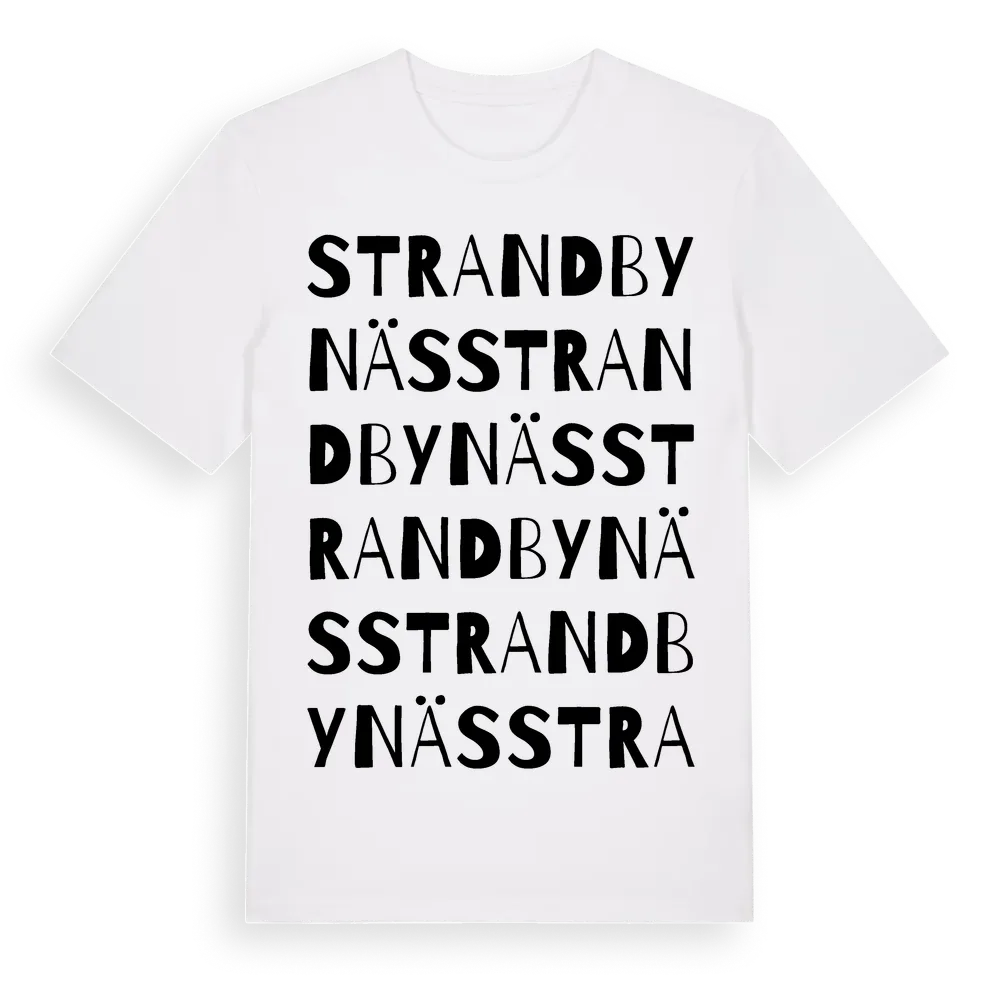 Strandbynäs ordlek t-shirt är inspirerad av Strandbynäs i Västra Götalands län, Sverige. Tröjan är designad för dig som har en speciell koppling till platsen – oavsett om du bor här, har rötterna här eller bara älskar Strandbynäs.
