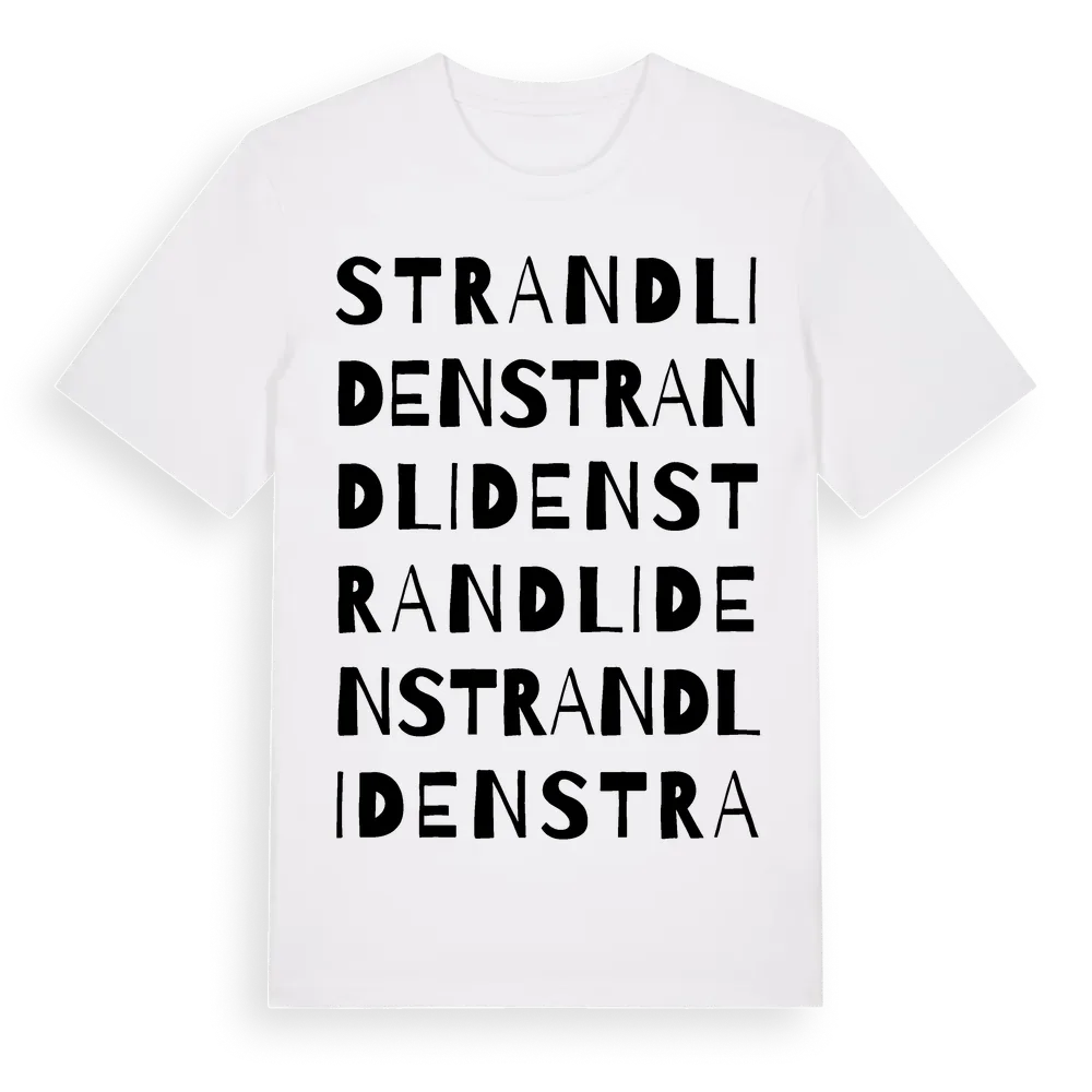 Strandliden ordlek t-shirt är inspirerad av Strandliden i Västra Götalands län, Sverige. Tröjan är designad för dig som har en speciell koppling till platsen – oavsett om du bor här, har rötterna här eller bara älskar Strandliden.