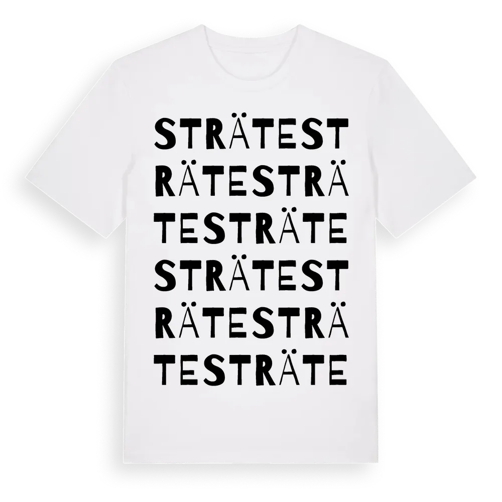 Sträte ordlek t-shirt är inspirerad av byn Sträte i Västra Götalands län, Sverige. Tröjan är designad för dig som har en speciell koppling till platsen – oavsett om du bor här, har rötterna här eller bara älskar Sträte.