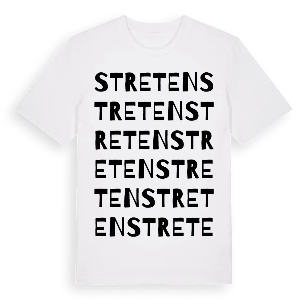 Streten ordlek t-shirt är inspirerad av Streten i Västra Götalands län, Sverige. Tröjan är designad för dig som har en speciell koppling till platsen – oavsett om du bor här, har rötterna här eller bara älskar Streten.
