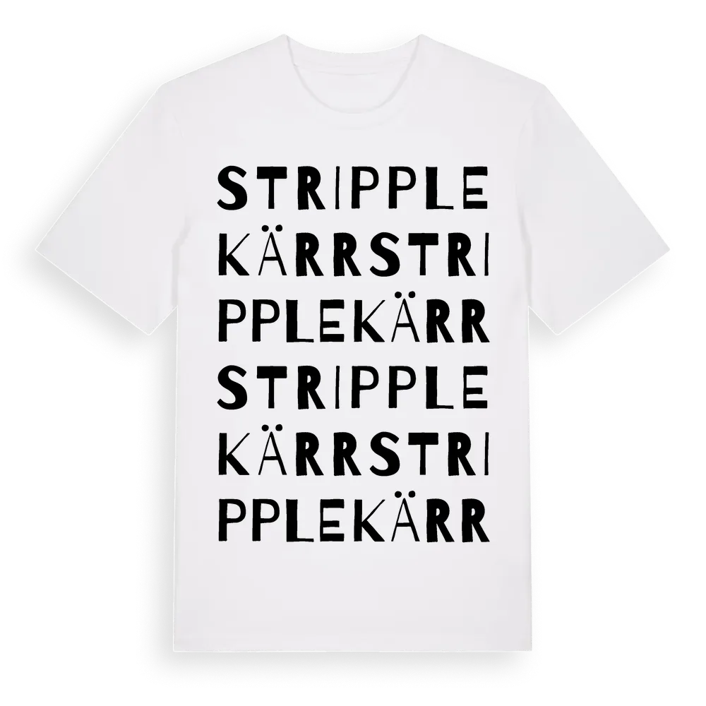 Stripplekärr ordlek t-shirt är inspirerad av byn Stripplekärr i Västra Götalands län, Sverige. Tröjan är designad för dig som har en speciell koppling till platsen – oavsett om du bor här, har rötterna här eller bara älskar Stripplekärr.