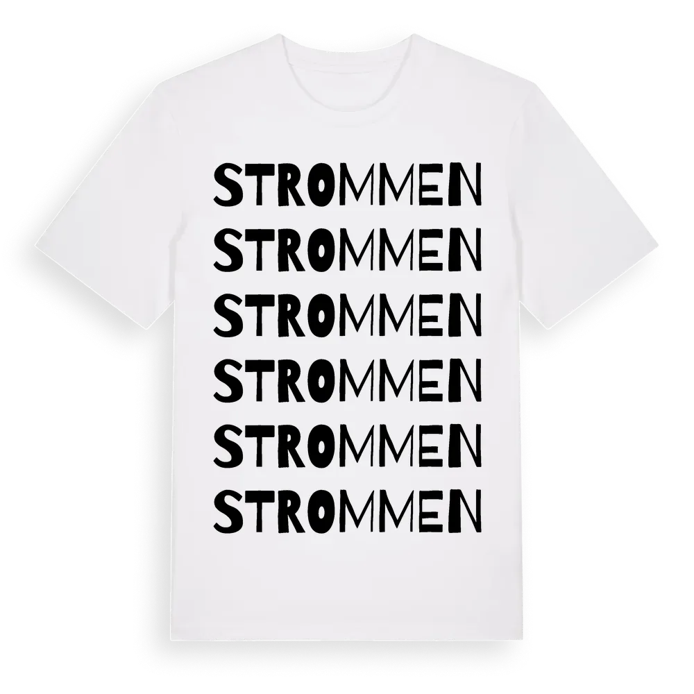 En ordlek byggd på Strommens namn. Subtilt och klurig – ett motiv som bara de som verkligen känner platsen fullt ut förstår. Premium bomull, unisex – från Strommen i Västra Götalands län.