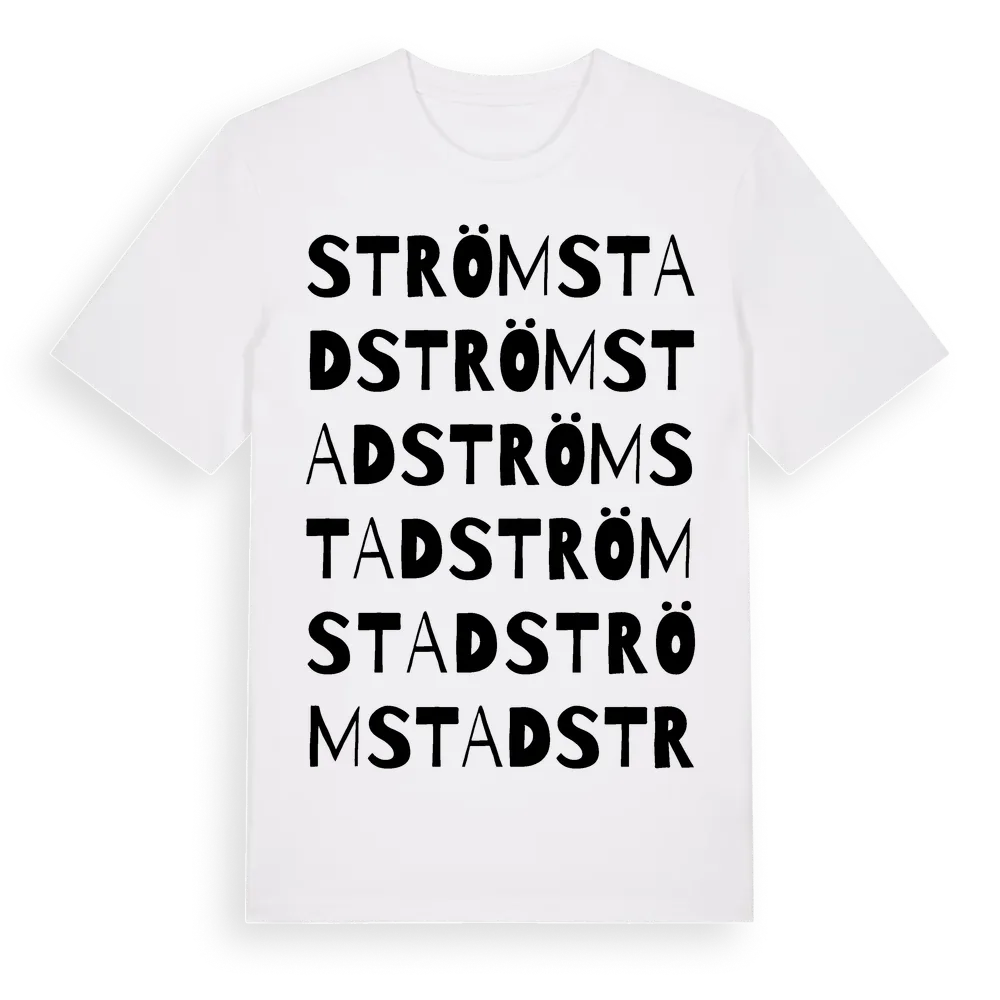 Strömstad ordlek t-shirt är inspirerad av staden Strömstad i Västra Götalands län, Sverige. Tröjan är designad för dig som har en speciell koppling till platsen – oavsett om du bor här, har rötterna här eller bara älskar Strömstad.