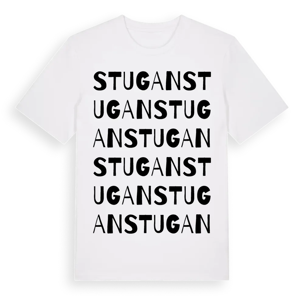 En ordlek byggd på Stugans namn. Subtilt och klurig – ett motiv som bara de som verkligen känner platsen fullt ut förstår. Premium bomull, unisex – från Stugan i Västra Götalands län.