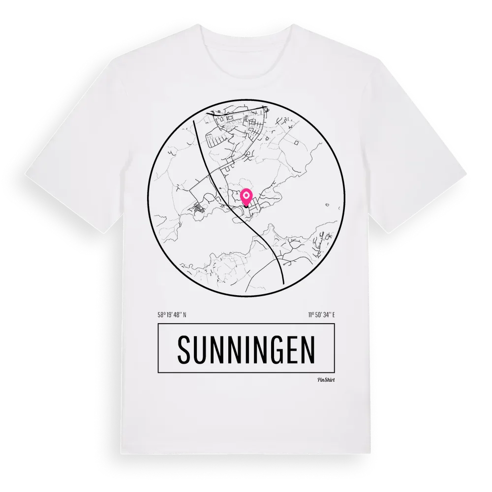Sunningen t-shirt är inspirerad av stadsdelen Sunningen i Västra Götalands län, Sverige. Tröjan är designad för dig som har en speciell koppling till platsen – oavsett om du bor här, har rötterna här eller bara älskar Sunningen.