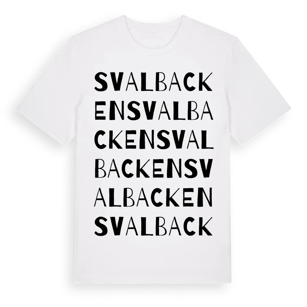 Svalbacken ordlek t-shirt är inspirerad av byn Svalbacken i Västra Götalands län, Sverige. Tröjan är designad för dig som har en speciell koppling till platsen – oavsett om du bor här, har rötterna här eller bara älskar Svalbacken.