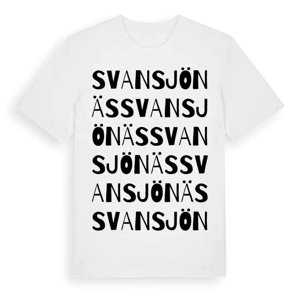 Svansjönäs ordlek t-shirt är inspirerad av Svansjönäs i Västra Götalands län, Sverige. Tröjan är designad för dig som har en speciell koppling till platsen – oavsett om du bor här, har rötterna här eller bara älskar Svansjönäs.