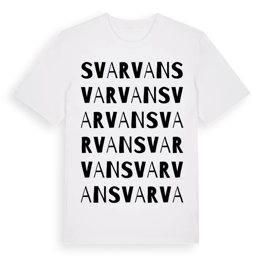 Svarvan ordlek t-shirt är inspirerad av Svarvan i Västra Götalands län, Sverige. Tröjan är designad för dig som har en speciell koppling till platsen – oavsett om du bor här, har rötterna här eller bara älskar Svarvan.