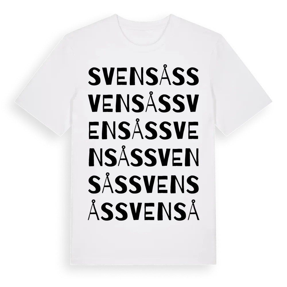 Svensås ordlek t-shirt är inspirerad av byn Svensås i Västra Götalands län, Sverige. Tröjan är designad för dig som har en speciell koppling till platsen – oavsett om du bor här, har rötterna här eller bara älskar Svensås.