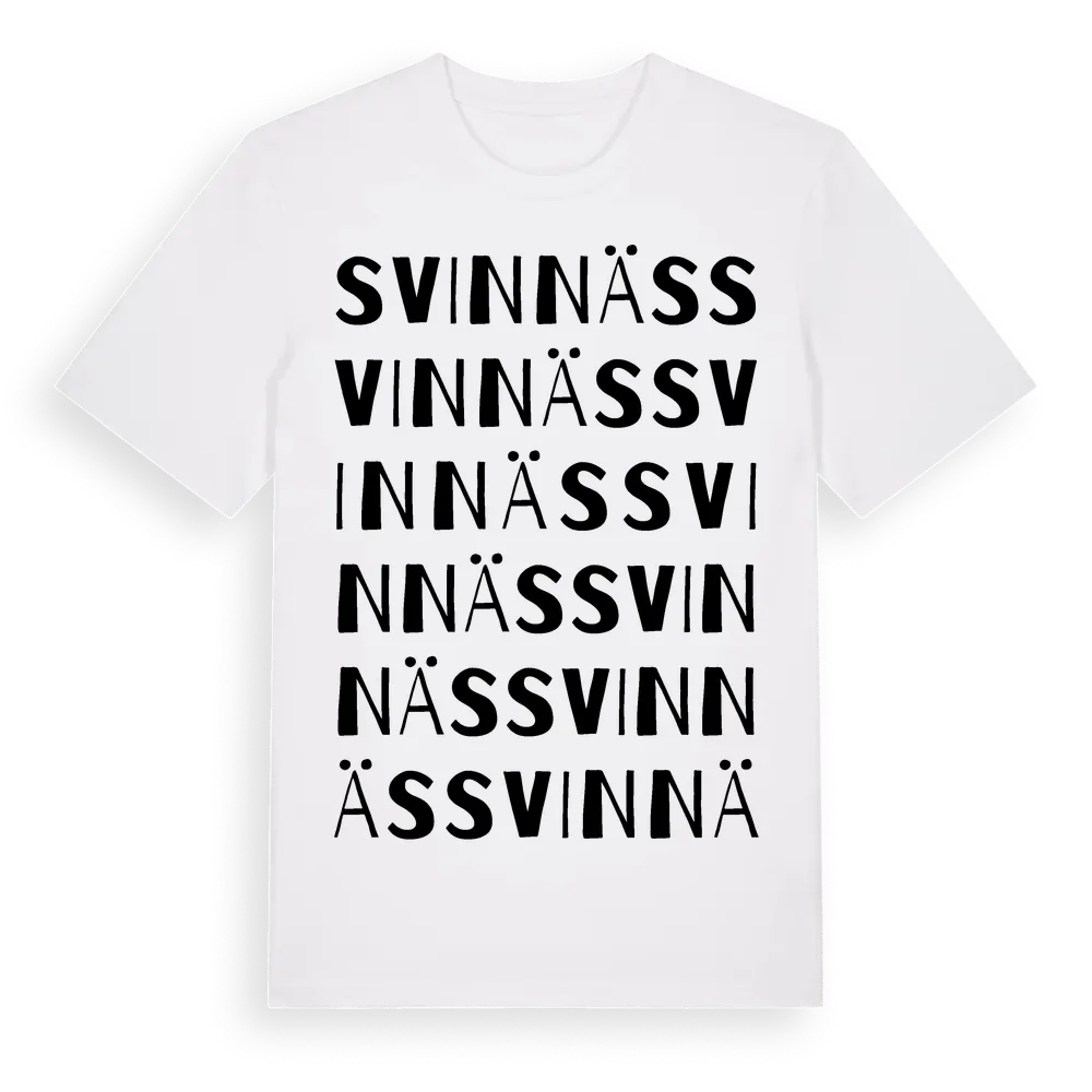 Svinnäs ordlek t-shirt är inspirerad av Svinnäs i Västra Götalands län, Sverige. Tröjan är designad för dig som har en speciell koppling till platsen – oavsett om du bor här, har rötterna här eller bara älskar Svinnäs.