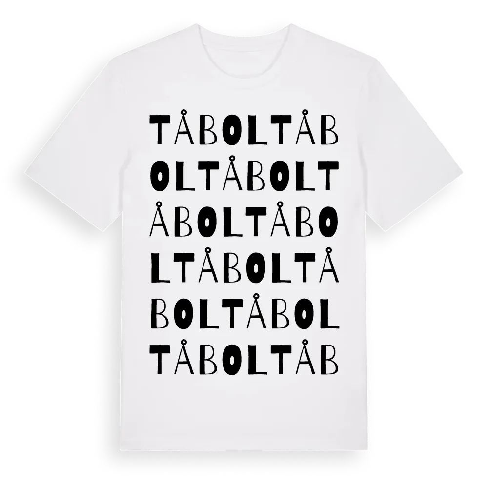 Tåbol ordlek t-shirt är inspirerad av Tåbol i Västra Götalands län, Sverige. Tröjan är designad för dig som har en speciell koppling till platsen – oavsett om du bor här, har rötterna här eller bara älskar Tåbol.