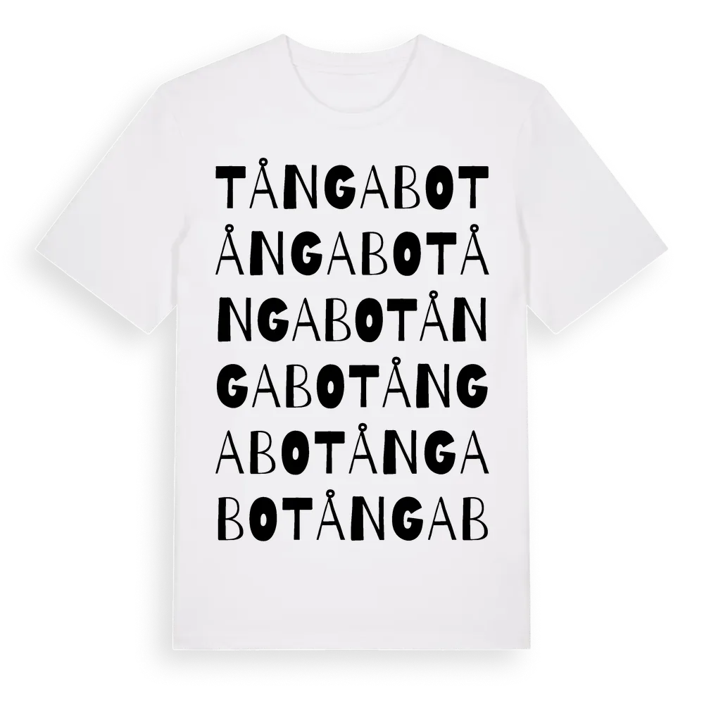Tångabo ordlek t-shirt är inspirerad av Tångabo i Västra Götalands län, Sverige. Tröjan är designad för dig som har en speciell koppling till platsen – oavsett om du bor här, har rötterna här eller bara älskar Tångabo.