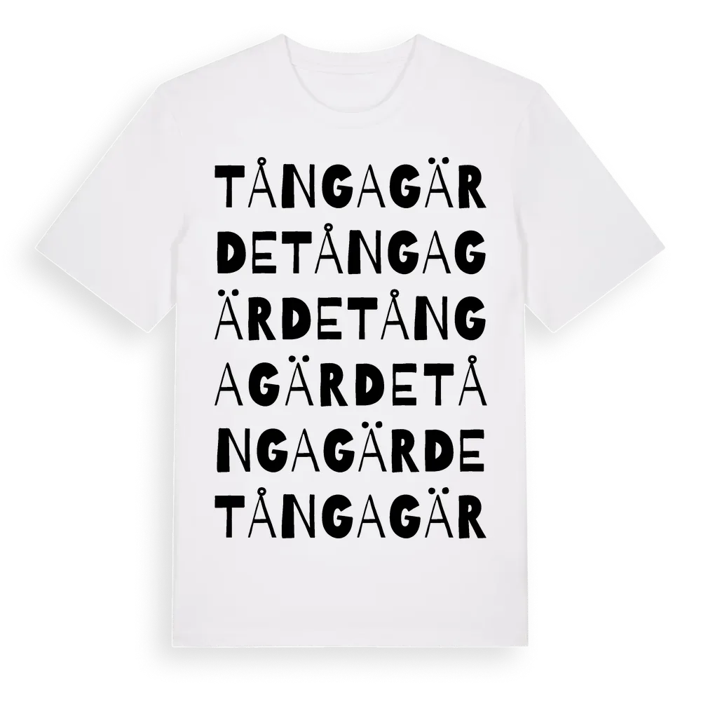 Tångagärde ordlek t-shirt är inspirerad av byn Tångagärde i Västra Götalands län, Sverige. Tröjan är designad för dig som har en speciell koppling till platsen – oavsett om du bor här, har rötterna här eller bara älskar Tångagärde.