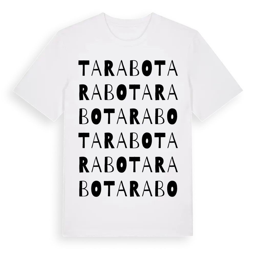 En ordlek byggd på Tarabos namn. Subtilt och klurig – ett motiv som bara de som verkligen känner platsen fullt ut förstår. Premium bomull, unisex – från byn Tarabo i Västra Götalands län.