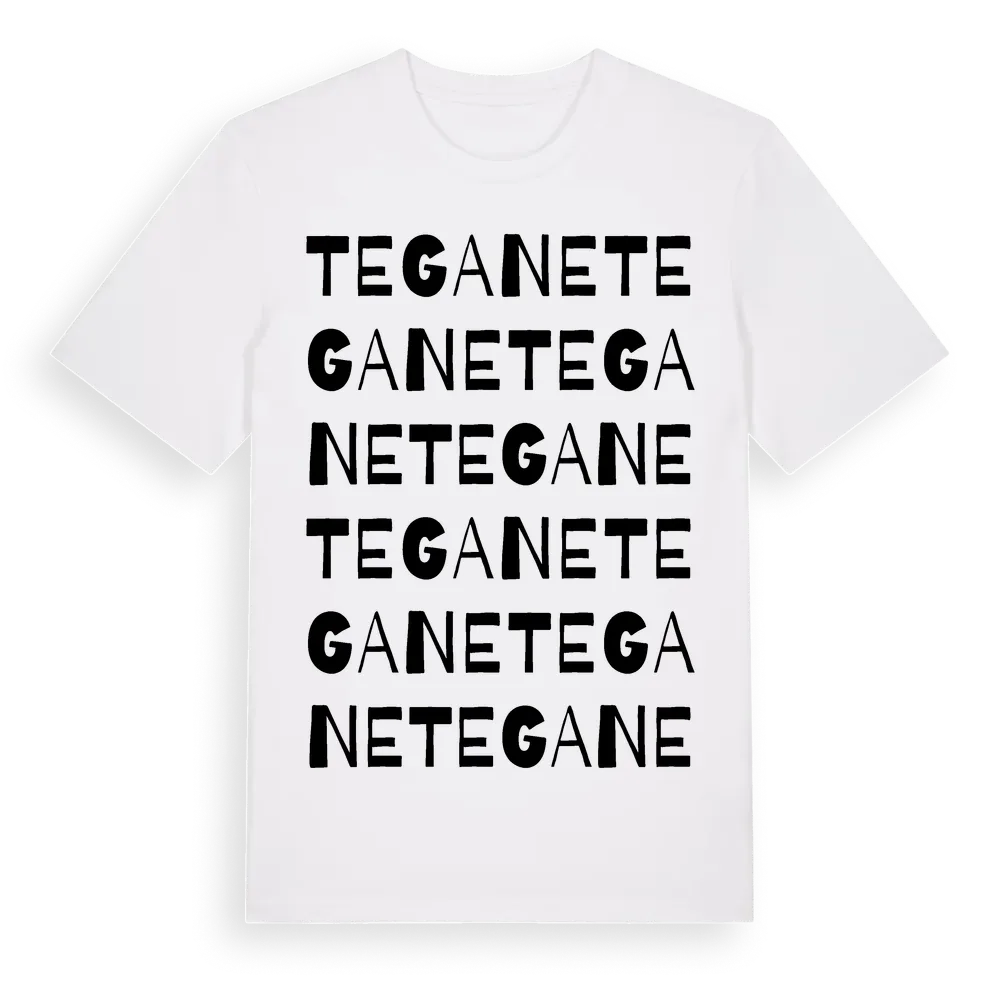 En ordlek byggd på Teganes namn. Subtilt och klurig – ett motiv som bara de som verkligen känner platsen fullt ut förstår. Premium bomull, unisex – från byn Tegane i Västra Götalands län.