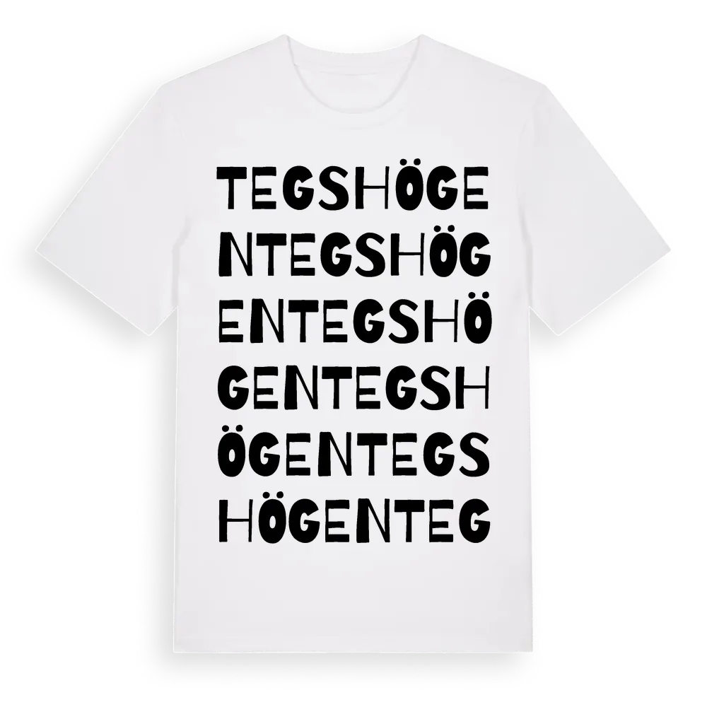 Tegshögen ordlek t-shirt är inspirerad av Tegshögen i Västra Götalands län, Sverige. Tröjan är designad för dig som har en speciell koppling till platsen – oavsett om du bor här, har rötterna här eller bara älskar Tegshögen.
