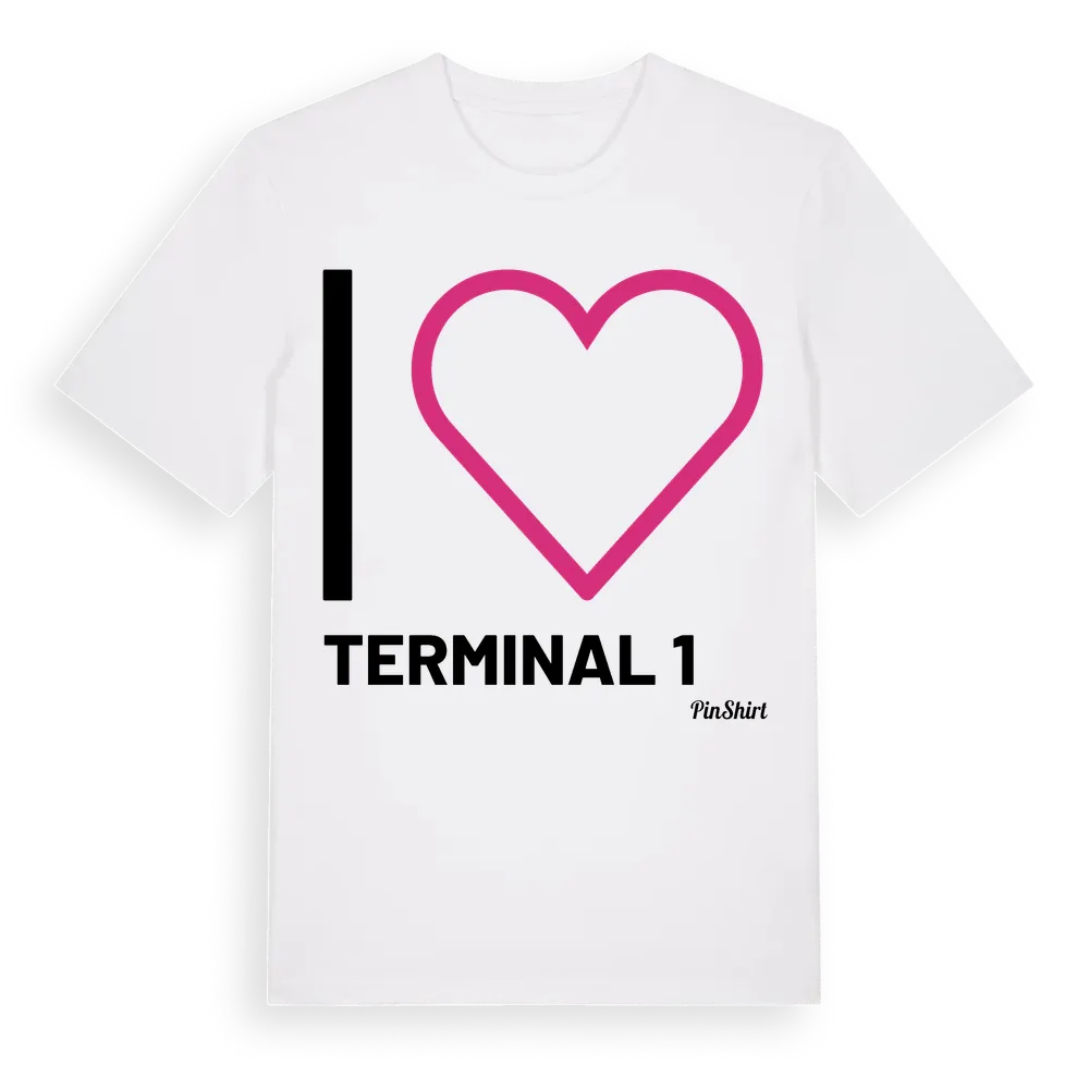 Det klassiska "I ❤ Terminal 1"-motivet i stort format som täcker hela bröstet. För dig som vill visa kärleken till Terminal 1 på riktigt. Premium bomull, unisex – från Terminal 1 i Västra Götalands län.