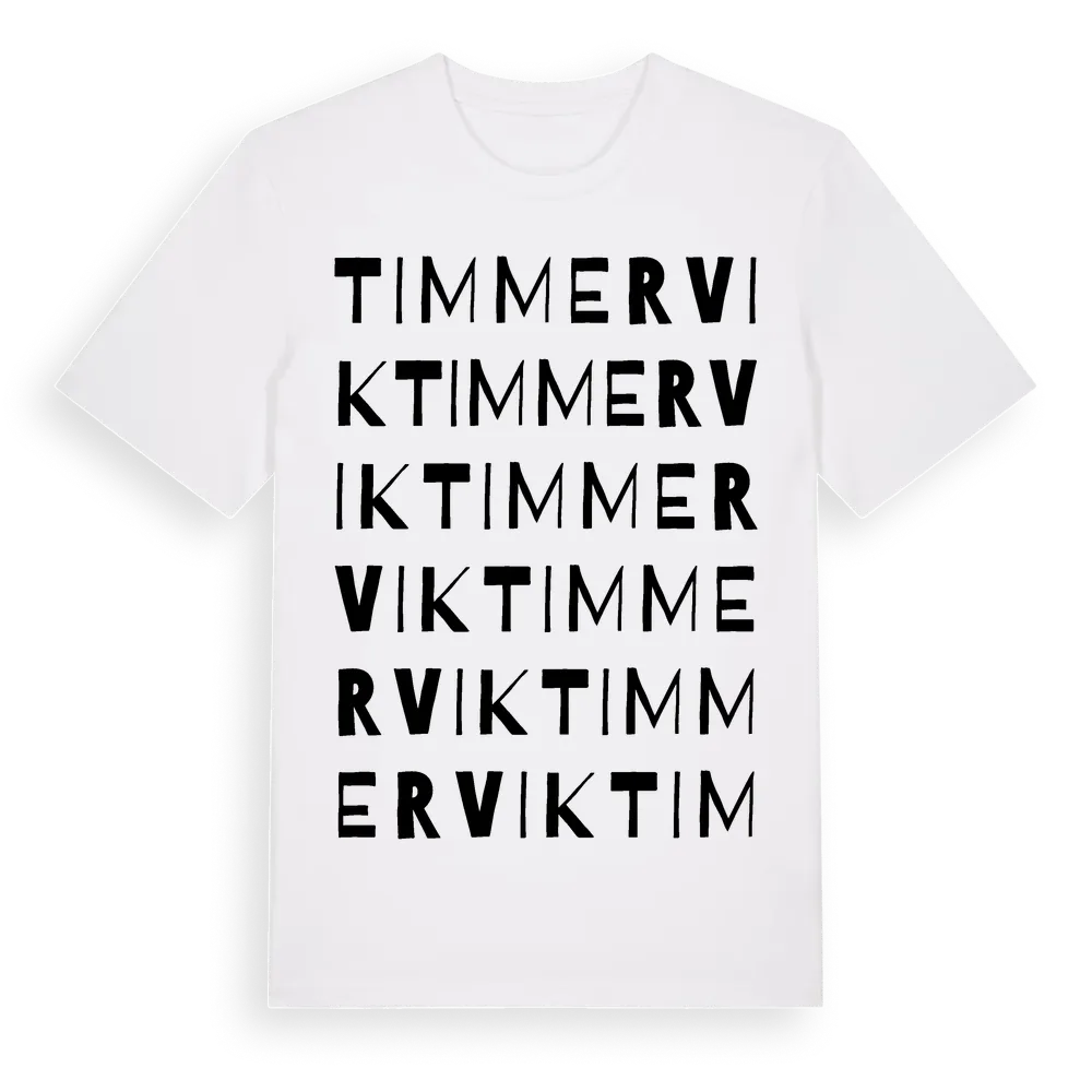 Timmervik ordlek t-shirt är inspirerad av byn Timmervik i Västra Götalands län, Sverige. Tröjan är designad för dig som har en speciell koppling till platsen – oavsett om du bor här, har rötterna här eller bara älskar Timmervik.