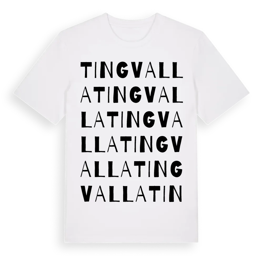 En ordlek byggd på Tingvallas namn. Subtilt och klurig – ett motiv som bara de som verkligen känner platsen fullt ut förstår. Premium bomull, unisex – från byn Tingvalla i Västra Götalands län.