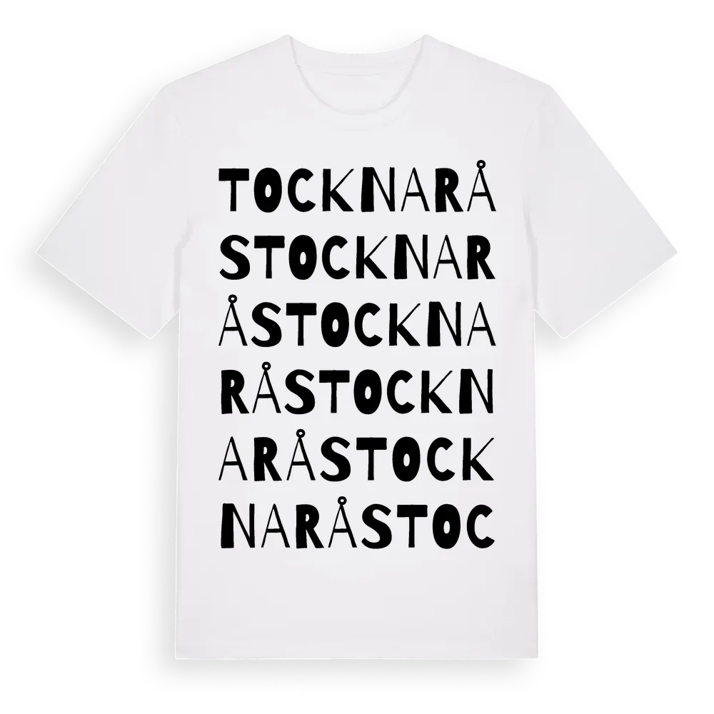 Tocknarås ordlek t-shirt är inspirerad av byn Tocknarås i Västra Götalands län, Sverige. Tröjan är designad för dig som har en speciell koppling till platsen – oavsett om du bor här, har rötterna här eller bara älskar Tocknarås.