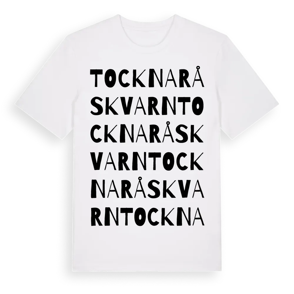 Tocknaråskvarn ordlek t-shirt är inspirerad av byn Tocknaråskvarn i Västra Götalands län, Sverige. Tröjan är designad för dig som har en speciell koppling till platsen – oavsett om du bor här, har rötterna här eller bara älskar Tocknaråskvarn.
