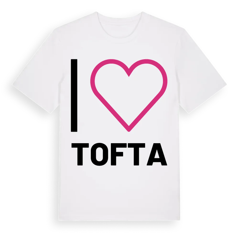 Det klassiska "I ❤ Tofta"-motivet i stort format som täcker hela bröstet. För dig som vill visa kärleken till Tofta på riktigt. Premium bomull, unisex – från Tofta i Västra Götalands län.