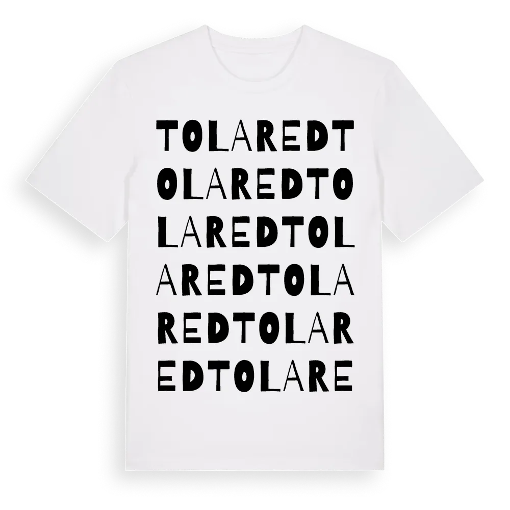Tolared ordlek t-shirt är inspirerad av Tolared i Västra Götalands län, Sverige. Tröjan är designad för dig som har en speciell koppling till platsen – oavsett om du bor här, har rötterna här eller bara älskar Tolared.