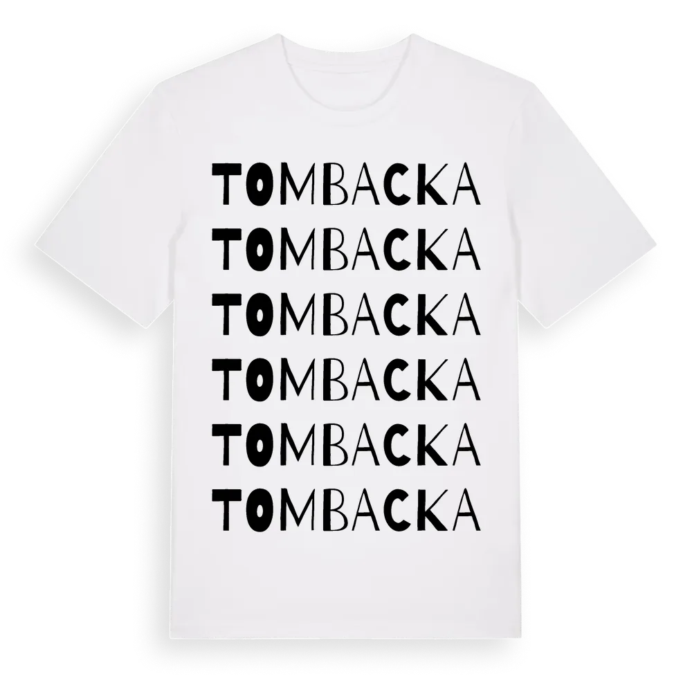 Tombacka ordlek t-shirt är inspirerad av Tombacka i Västra Götalands län, Sverige. Tröjan är designad för dig som har en speciell koppling till platsen – oavsett om du bor här, har rötterna här eller bara älskar Tombacka.