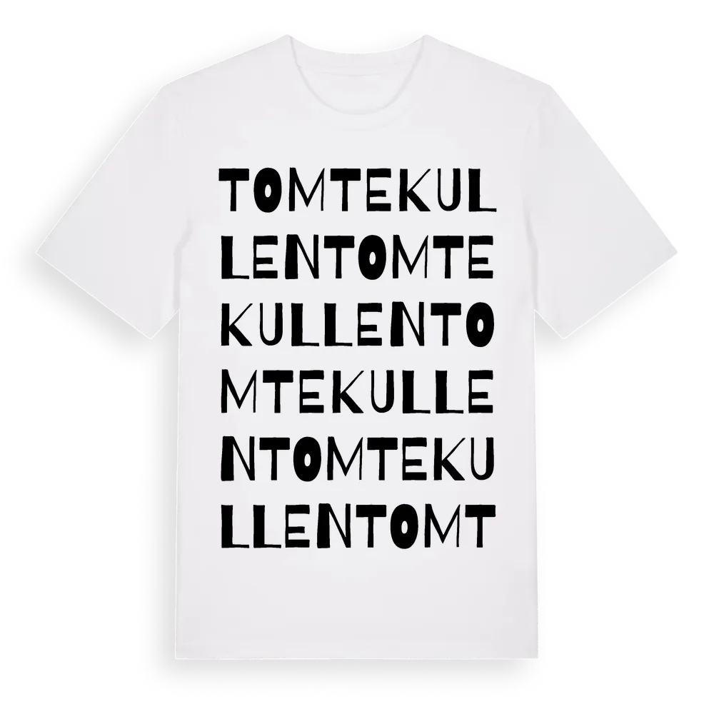 Tomtekullen ordlek t-shirt är inspirerad av Tomtekullen i Västra Götalands län, Sverige. Tröjan är designad för dig som har en speciell koppling till platsen – oavsett om du bor här, har rötterna här eller bara älskar Tomtekullen.