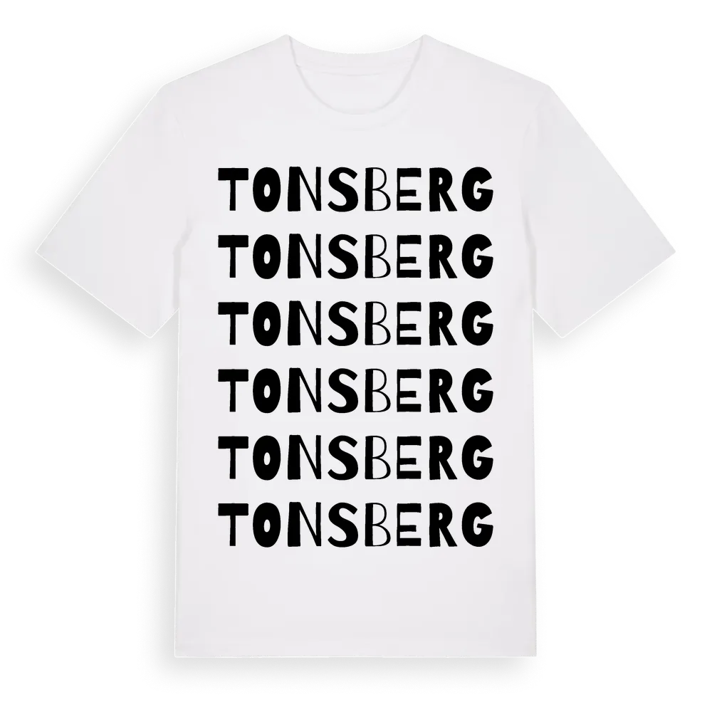 Tonsberg ordlek t-shirt är inspirerad av Tonsberg i Västra Götalands län, Sverige. Tröjan är designad för dig som har en speciell koppling till platsen – oavsett om du bor här, har rötterna här eller bara älskar Tonsberg.