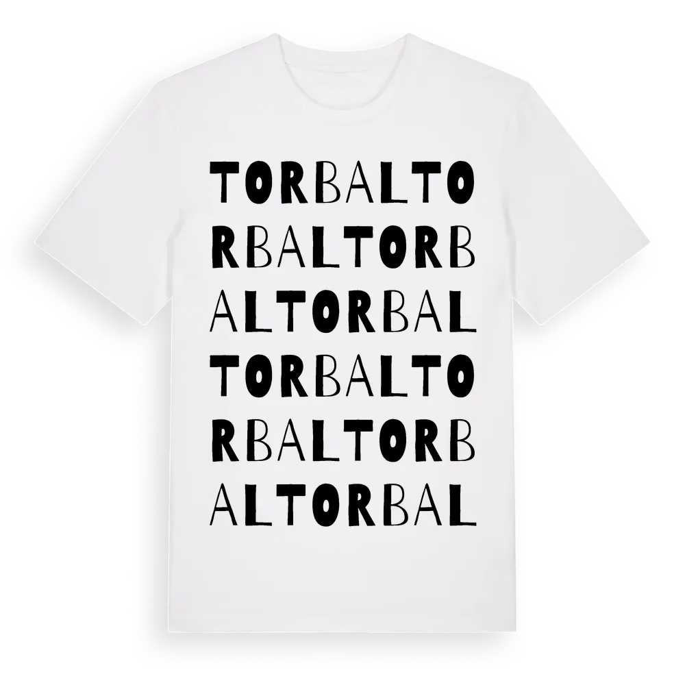 Torbal ordlek t-shirt är inspirerad av byn Torbal i Västra Götalands län, Sverige. Tröjan är designad för dig som har en speciell koppling till platsen – oavsett om du bor här, har rötterna här eller bara älskar Torbal.