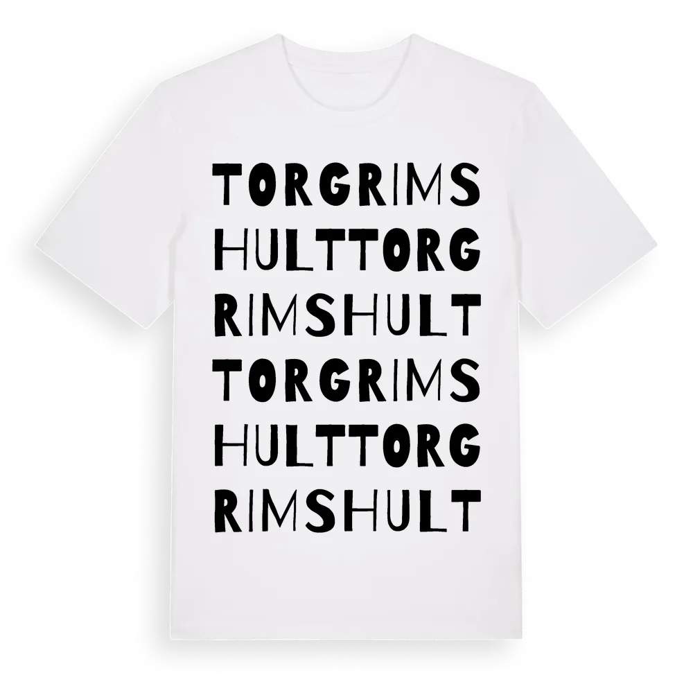 En ordlek byggd på Torgrimshults namn. Subtilt och klurig – ett motiv som bara de som verkligen känner platsen fullt ut förstår. Premium bomull, unisex – från Torgrimshult i Västra Götalands län.