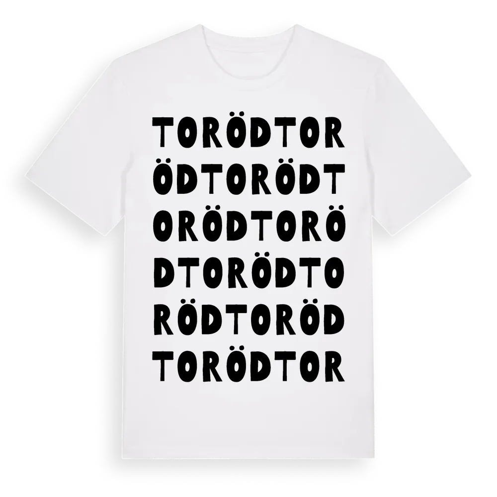 Toröd ordlek t-shirt är inspirerad av byn Toröd i Västra Götalands län, Sverige. Tröjan är designad för dig som har en speciell koppling till platsen – oavsett om du bor här, har rötterna här eller bara älskar Toröd.