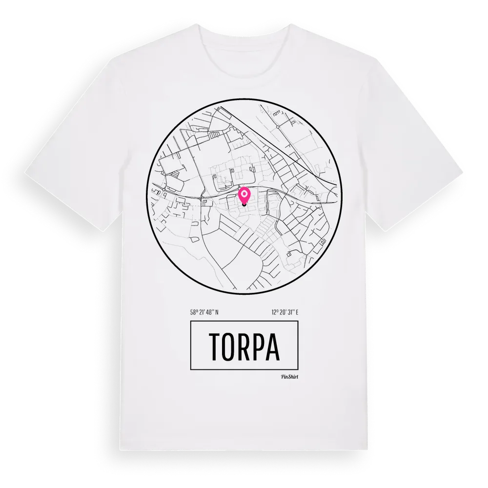 Torpa t-shirt är inspirerad av stadsdelen Torpa i Västra Götalands län, Sverige. Tröjan är designad för dig som har en speciell koppling till platsen – oavsett om du bor här, har rötterna här eller bara älskar Torpa.