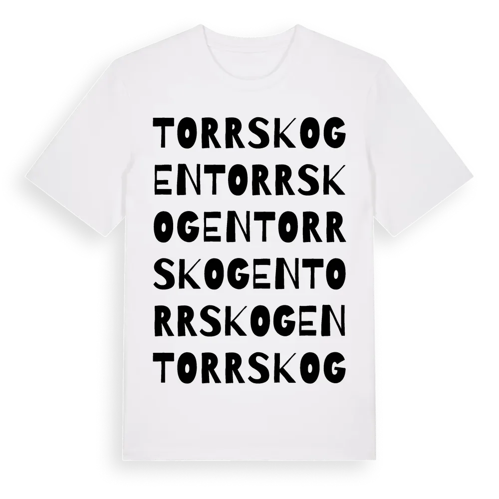 Torrskogen ordlek t-shirt är inspirerad av Torrskogen i Västra Götalands län, Sverige. Tröjan är designad för dig som har en speciell koppling till platsen – oavsett om du bor här, har rötterna här eller bara älskar Torrskogen.