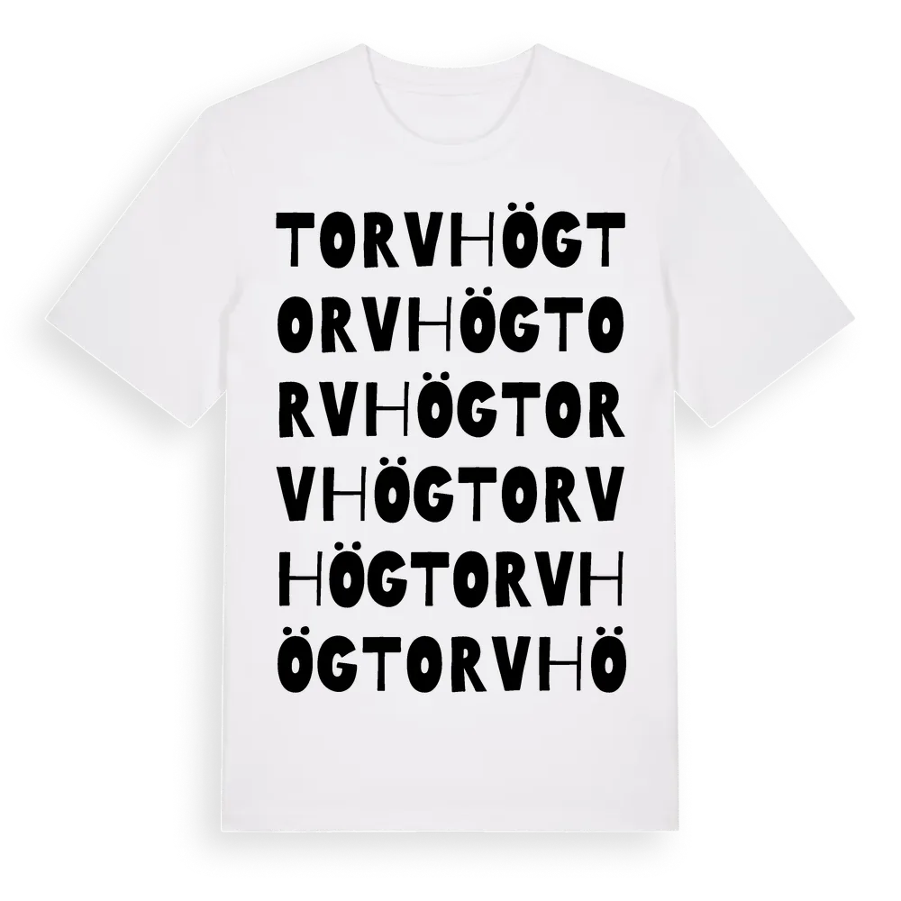 Torvhög ordlek t-shirt är inspirerad av byn Torvhög i Västra Götalands län, Sverige. Tröjan är designad för dig som har en speciell koppling till platsen – oavsett om du bor här, har rötterna här eller bara älskar Torvhög.