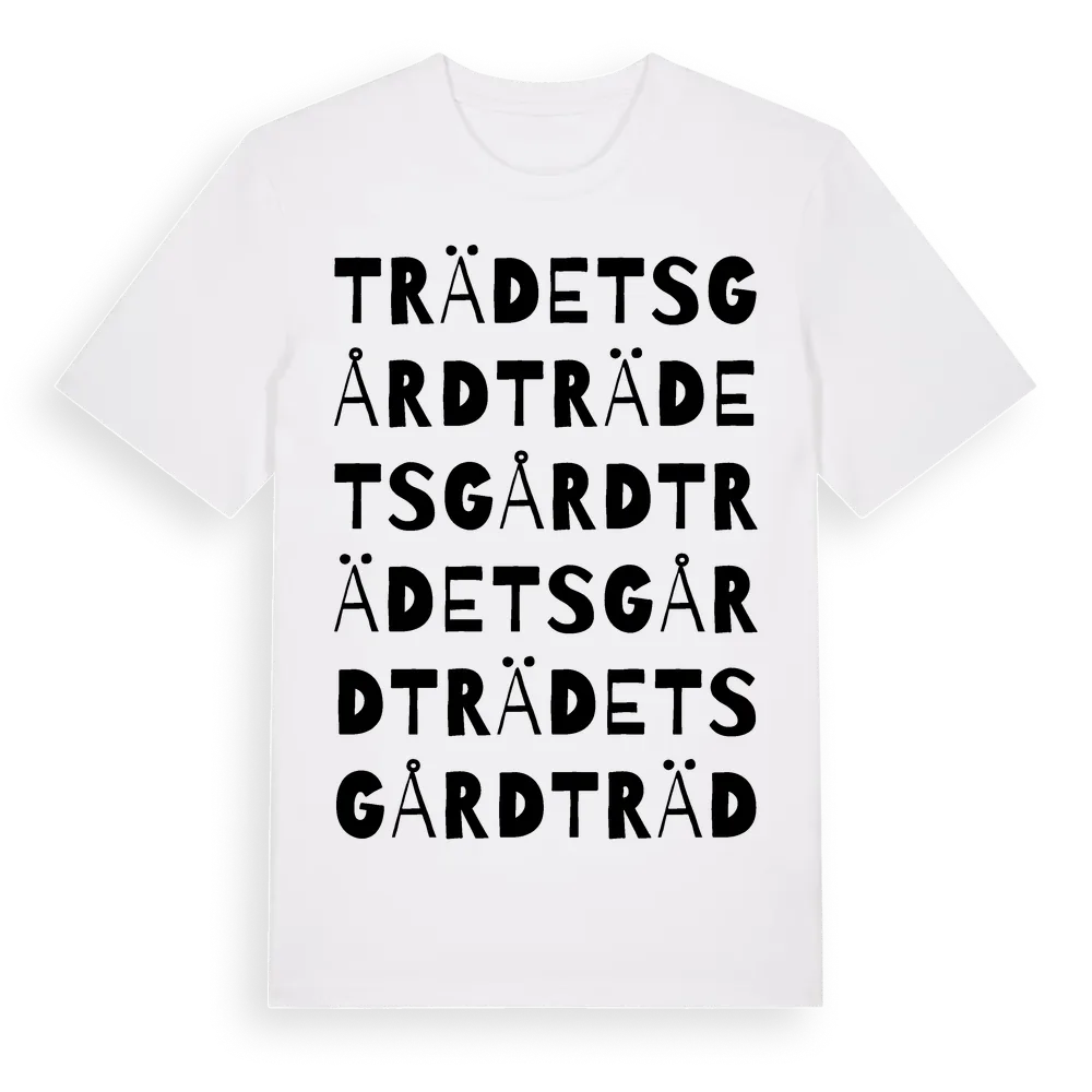 Trädets Gård ordlek t-shirt är inspirerad av Trädets Gård i Västra Götalands län, Sverige. Tröjan är designad för dig som har en speciell koppling till platsen – oavsett om du bor här, har rötterna här eller bara älskar Trädets Gård.