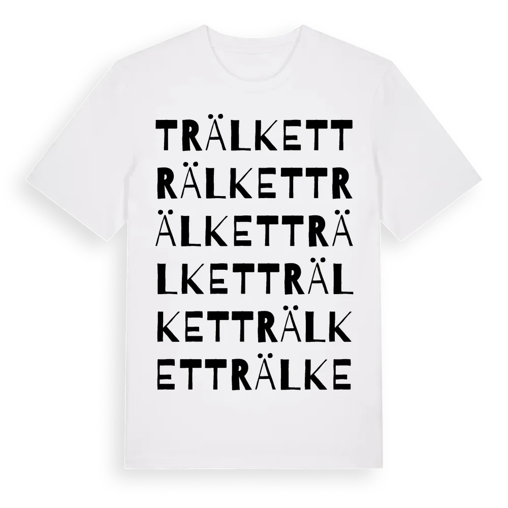 Trälket ordlek t-shirt är inspirerad av byn Trälket i Västra Götalands län, Sverige. Tröjan är designad för dig som har en speciell koppling till platsen – oavsett om du bor här, har rötterna här eller bara älskar Trälket.