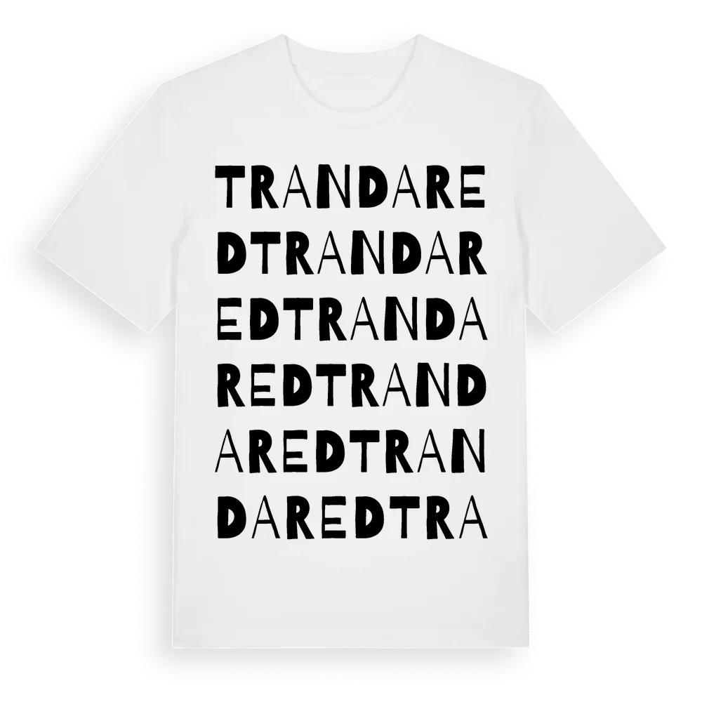 Trandared ordlek t-shirt är inspirerad av stadsdelen Trandared i Västra Götalands län, Sverige. Tröjan är designad för dig som har en speciell koppling till platsen – oavsett om du bor här, har rötterna här eller bara älskar Trandared.