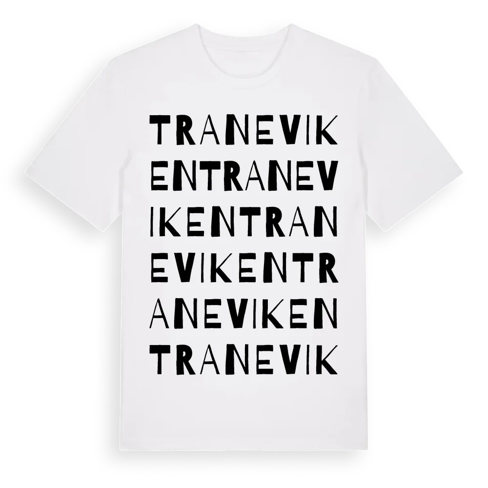 Traneviken ordlek t-shirt är inspirerad av Traneviken i Västra Götalands län, Sverige. Tröjan är designad för dig som har en speciell koppling till platsen – oavsett om du bor här, har rötterna här eller bara älskar Traneviken.