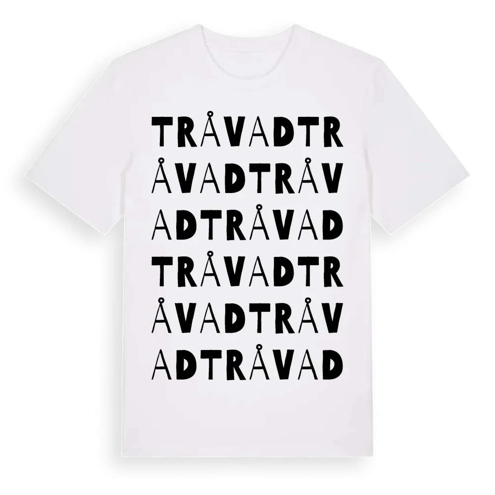 Tråvad ordlek t-shirt är inspirerad av byn Tråvad i Västra Götalands län, Sverige. Tröjan är designad för dig som har en speciell koppling till platsen – oavsett om du bor här, har rötterna här eller bara älskar Tråvad.