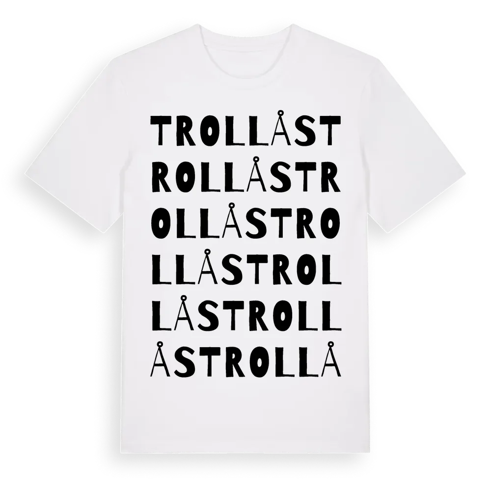 Trollås ordlek t-shirt är inspirerad av byn Trollås i Västra Götalands län, Sverige. Tröjan är designad för dig som har en speciell koppling till platsen – oavsett om du bor här, har rötterna här eller bara älskar Trollås.
