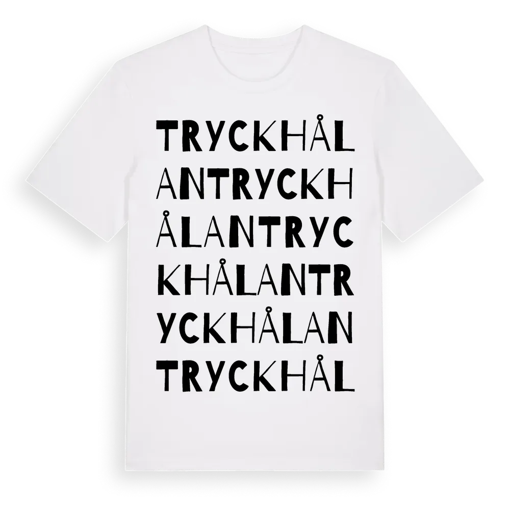 Tryckhålan ordlek t-shirt är inspirerad av Tryckhålan i Västra Götalands län, Sverige. Tröjan är designad för dig som har en speciell koppling till platsen – oavsett om du bor här, har rötterna här eller bara älskar Tryckhålan.