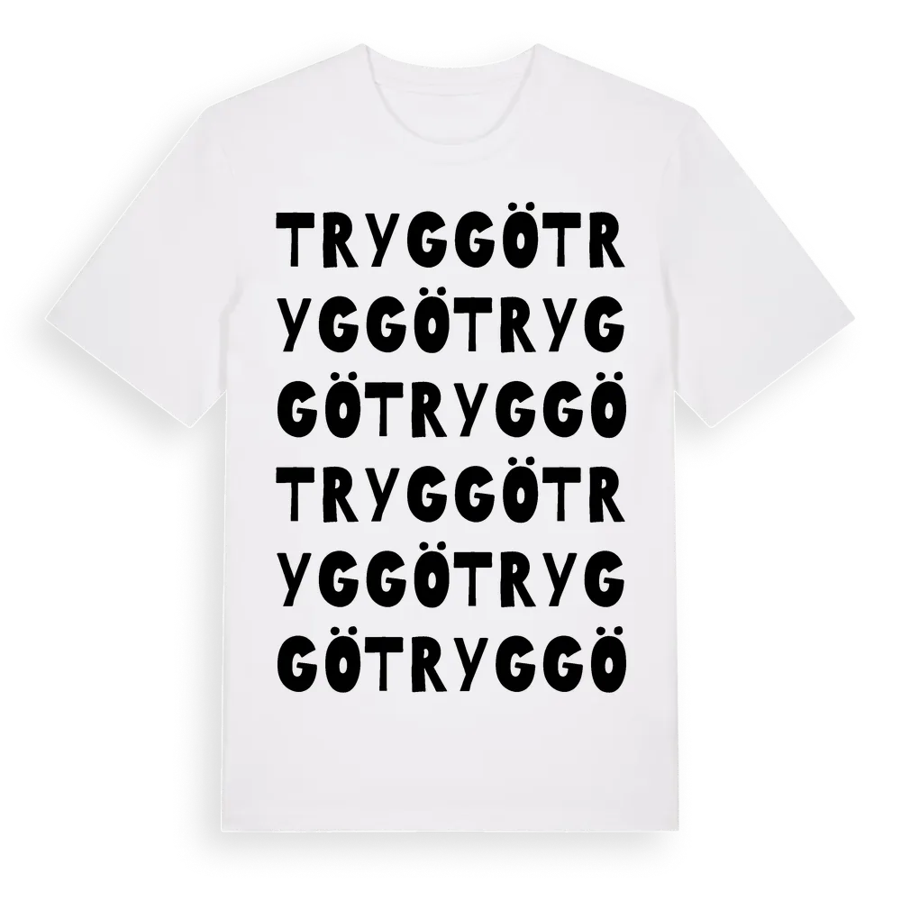 Tryggö ordlek t-shirt är inspirerad av ön Tryggö i Västra Götalands län, Sverige. Tröjan är designad för dig som har en speciell koppling till platsen – oavsett om du bor här, har rötterna här eller bara älskar Tryggö.