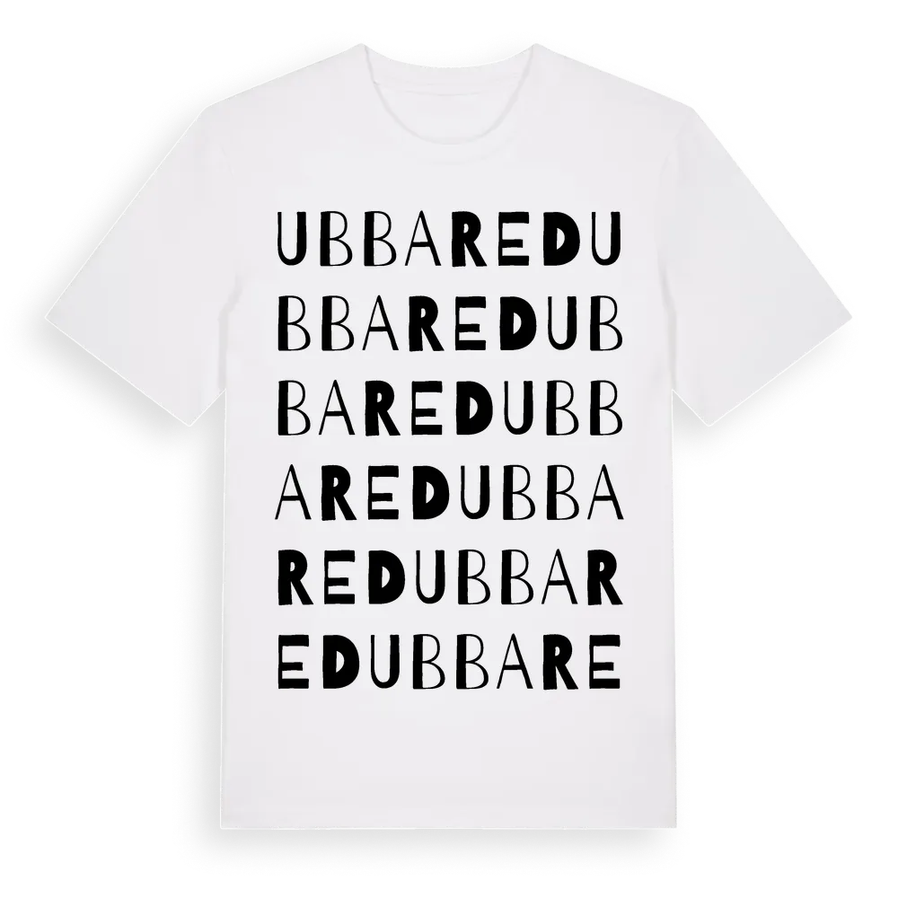 Ubbared ordlek t-shirt är inspirerad av byn Ubbared i Västra Götalands län, Sverige. Tröjan är designad för dig som har en speciell koppling till platsen – oavsett om du bor här, har rötterna här eller bara älskar Ubbared.