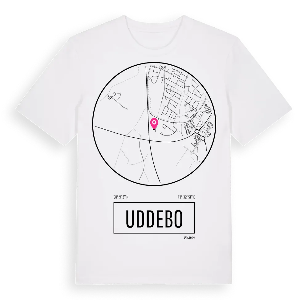 Ett rent, runt tryck med Uddebos namn. Minimalistiskt och stilrent – perfekt för den som känner platsen utan att skrika det. Premium bomull, unisex – från stadsdelen Uddebo i Västra Götalands län.