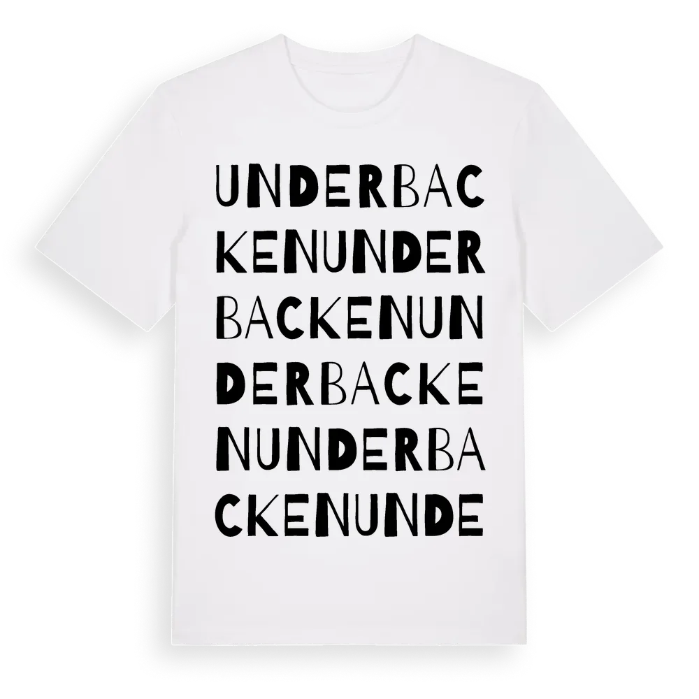 En ordlek byggd på Underbackens namn. Subtilt och klurig – ett motiv som bara de som verkligen känner platsen fullt ut förstår. Premium bomull, unisex – från Underbacken i Västra Götalands län.